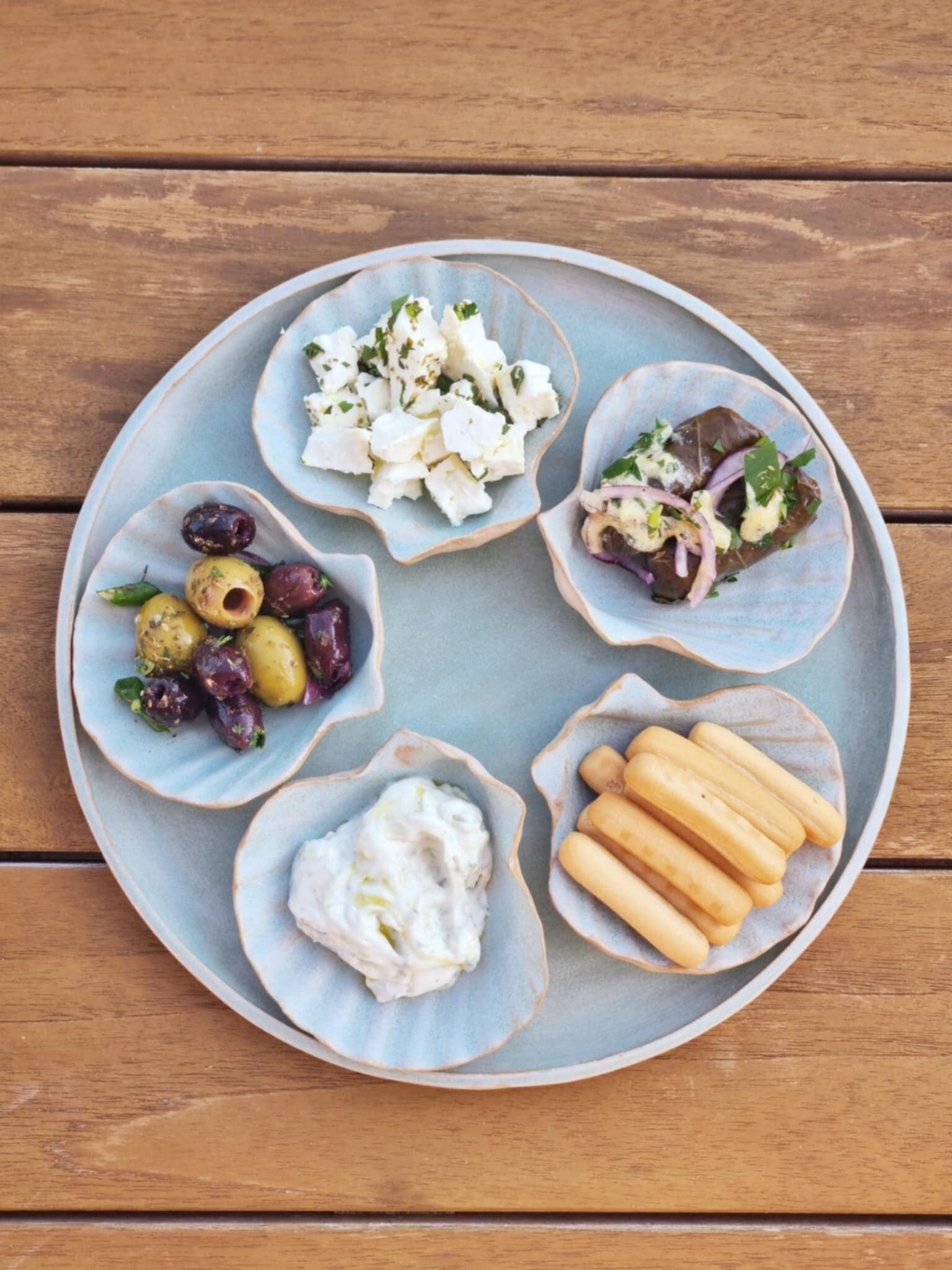 Breng je tapas of mezze deze zomer stijlvol op tafel! Deze tapasset bestaat uit een onderbord en vijf schelpen. De prachtige kleur van de set doet denken aan de zee, de duinen en de zilte zeelucht.