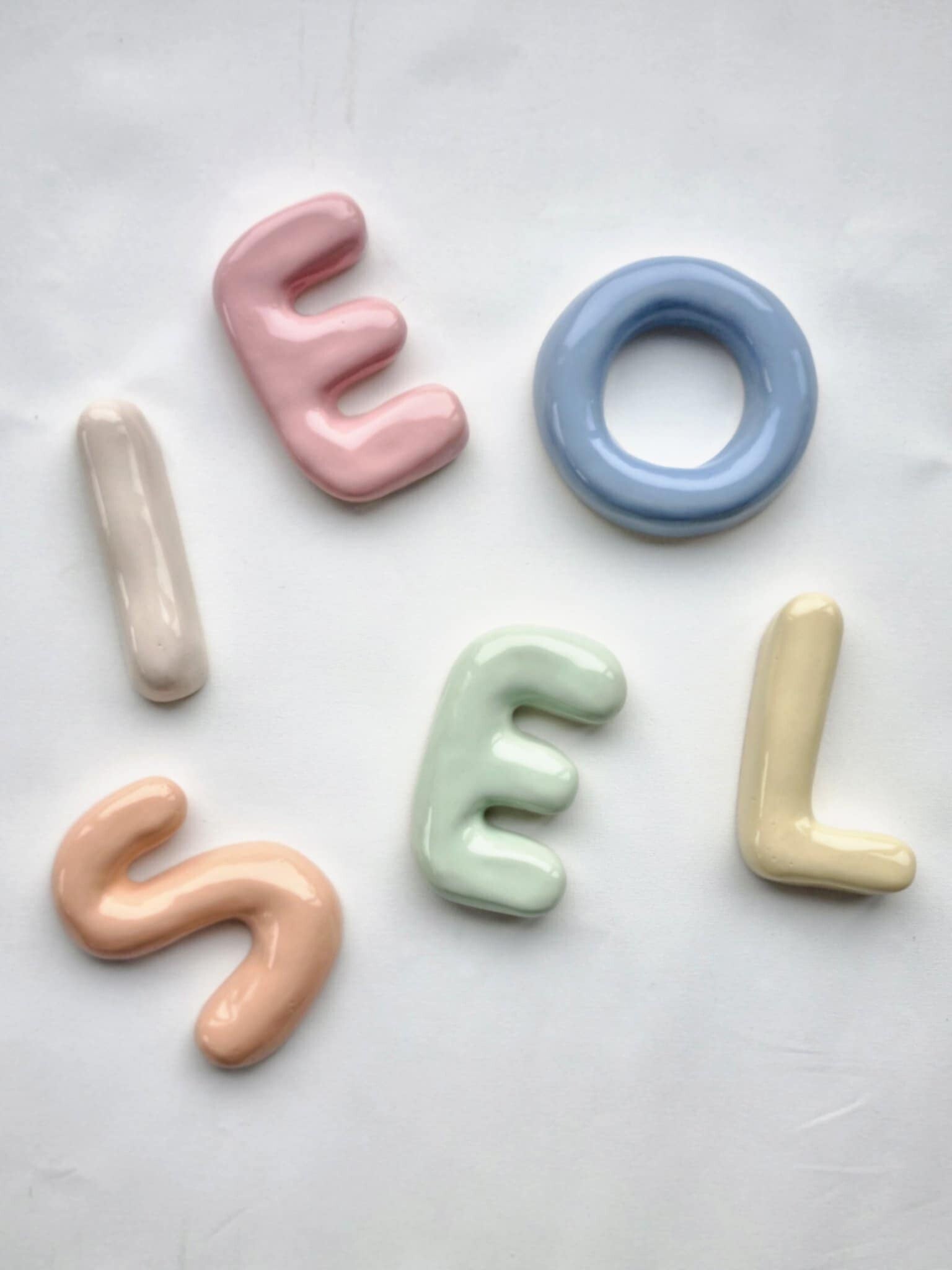 Op zoek naar een uniek en speels accent voor de babykamer, kinderkamer of als persoonlijk cadeautje? Ontdek mijn handgemaakte keramieken bubbelletters!